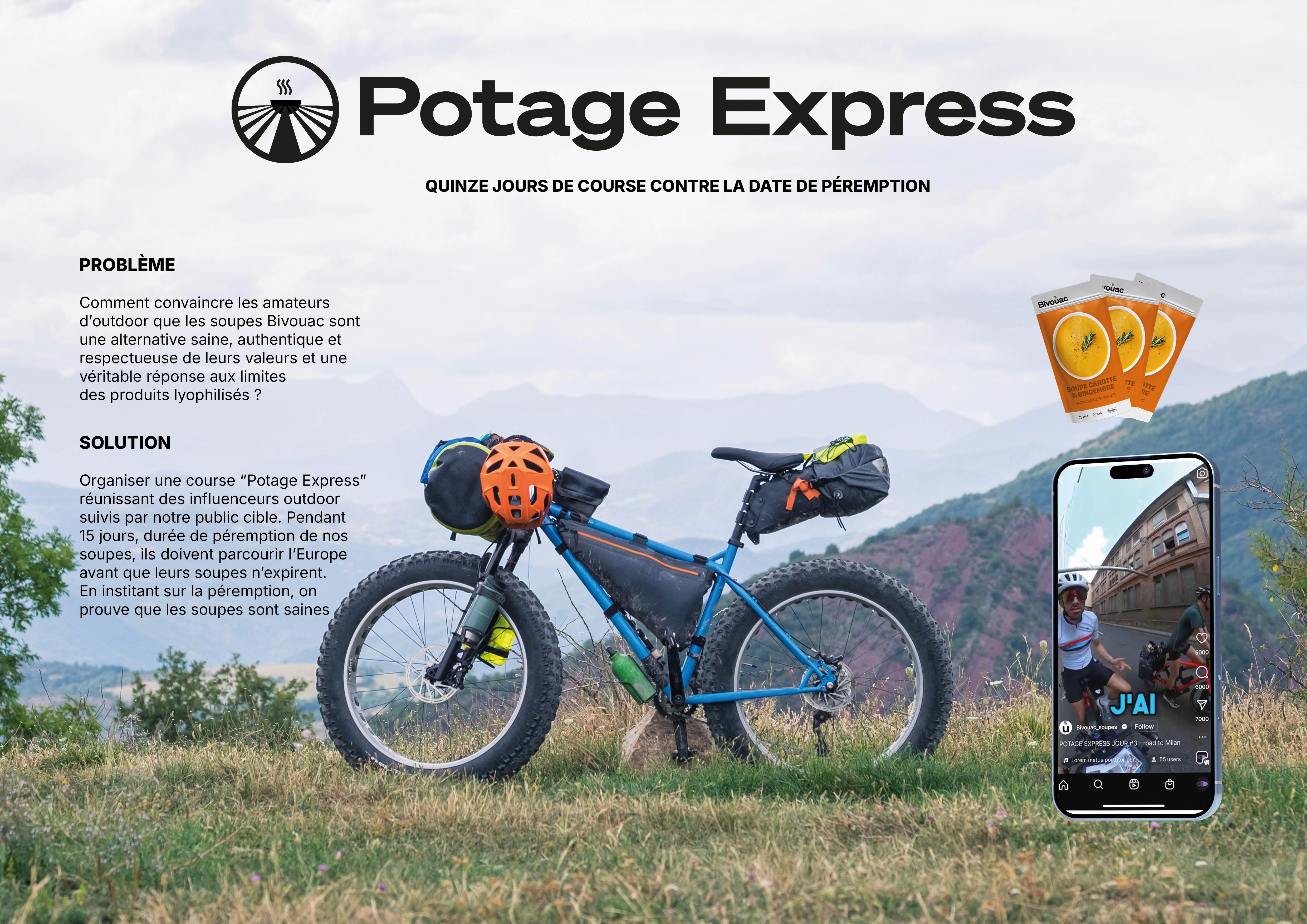 Donner envie de consommer davantage de légumes en les rendant accessibles et attractifs sous forme de soupe. Créer une soupe à thème, de la recette au concept, pensée pour le lunch ou le repas sur le pouce. Développer son branding, son packaging 3D et une campagne de lancement cohérente avec l’univers choisi.