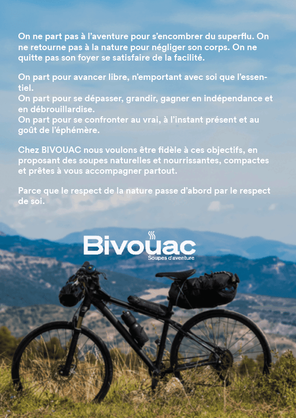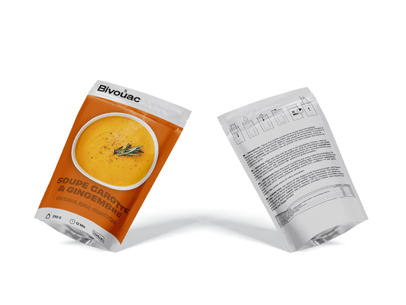 BIVOUAC, une marque de soupe compacte, facile à transporter et non lyophilisée.